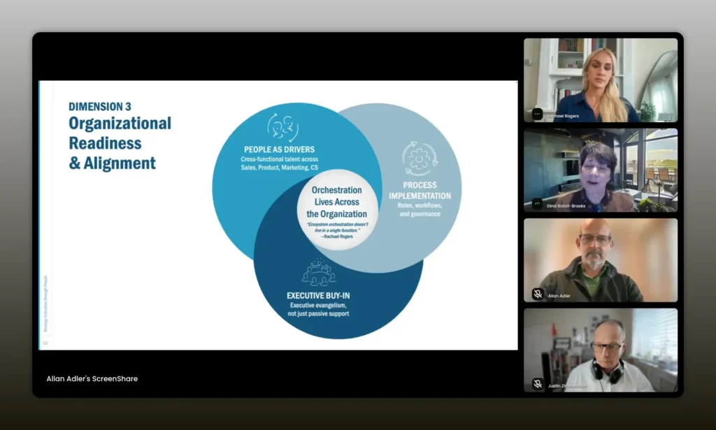 Ecosystem orchestration is about aligning people, processes, and technology so partners become a repeatable, measurable growth engine. -Rachael Rogers