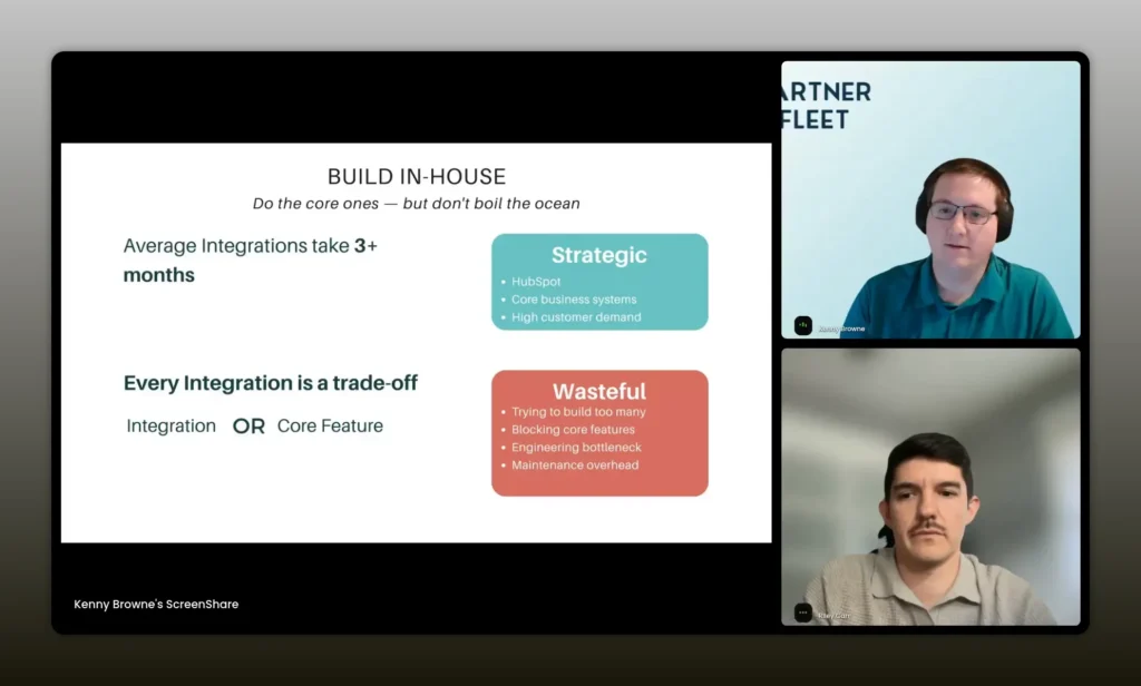 Building integrations in‑house gives you the control and depth enterprise buyers expect — but it’s slow, creates engineering bottlenecks, and saddles you with ongoing maintenance. -Kenny Browne