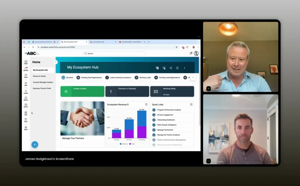 James and Derek emphasized composability as the operating model. Composability means picking small, well-defined building blocks — partner scoring, deal registration, MDF management, training progress — and enabling them to be assembled into complete experiences.