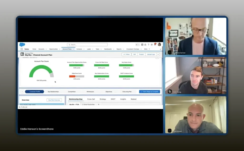 Start your account planning process with the cross-sell view. It shows your shared pipeline at a glance. – Eddie Hanson