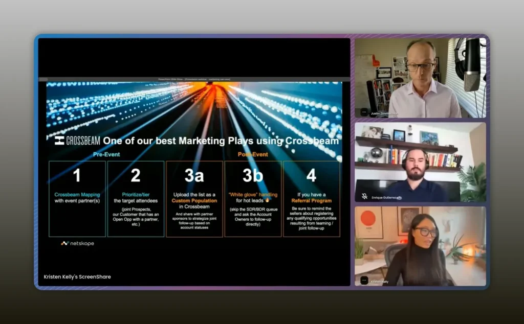 Kristen solved this by using Crossbeam before, during, and after events to pull targeted invitations and prioritize attendance.