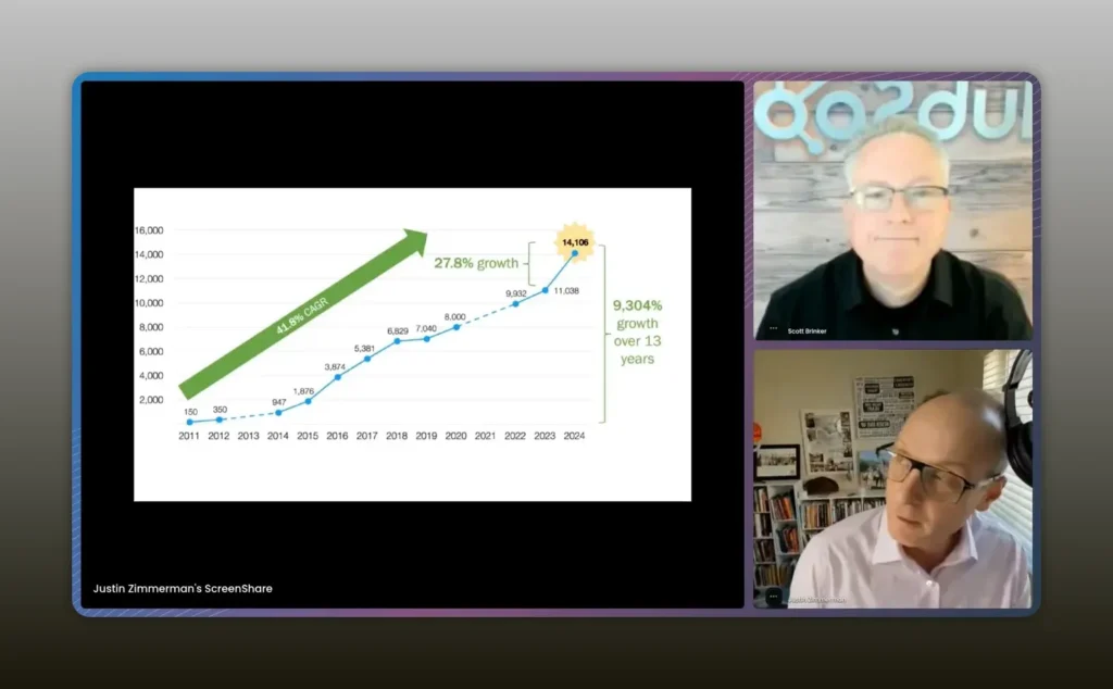Roughly a 40–42% compound annual growth rate in new integration — that kind of CAGR fuels the long‑tail explosion. -Scott Brinker
